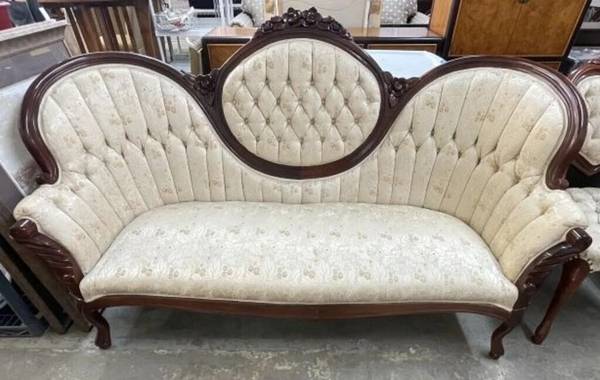 Antique Sofa w/ 2 heart shaped chairs, Creme colored in great condition