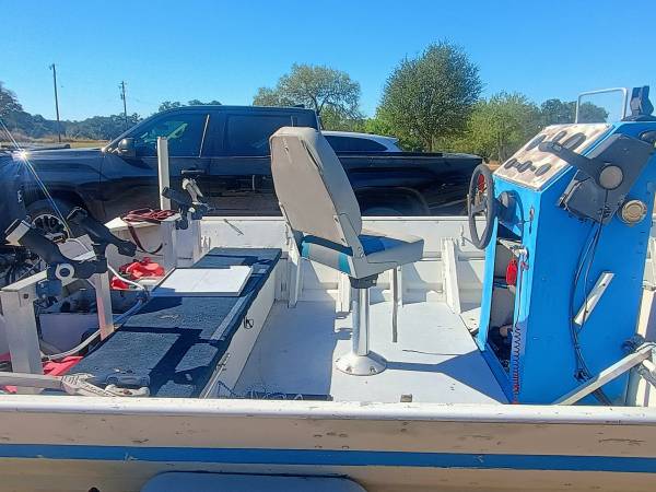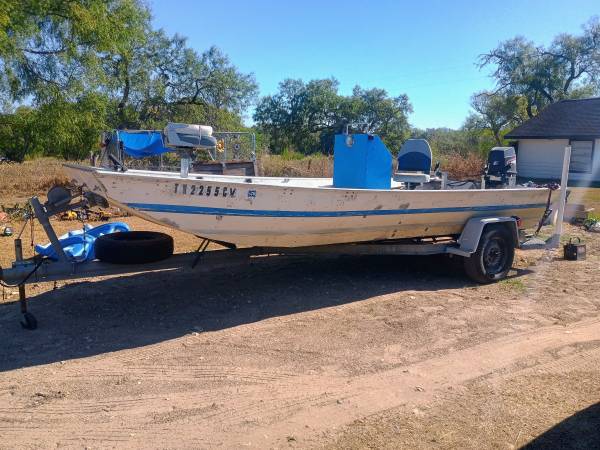 Trailer tires and spare in great shape! Includes two fuel tanks, new fuel line and primer bulb, aluminum rack with rod holders in the rear, anchor, and transmon saver. Txt show contact info