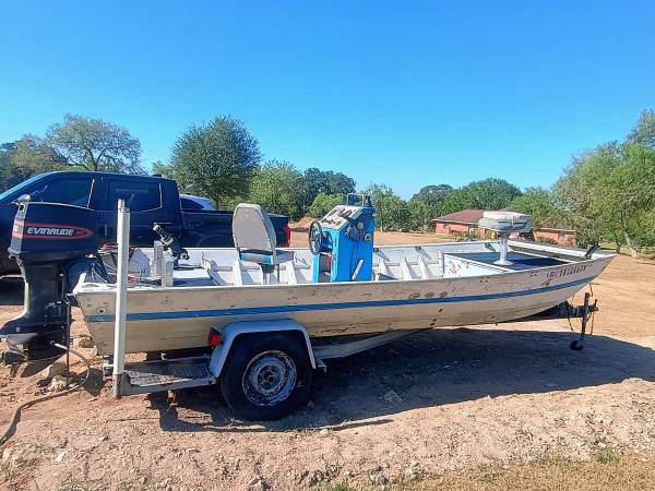 STEAL!! WON'T LAST THIS CHEAP!! This is a tank of a aluminum boat! Super wide and stable for a variety of conditions! The evinrude runs great super reliable and easy to maintain!