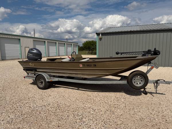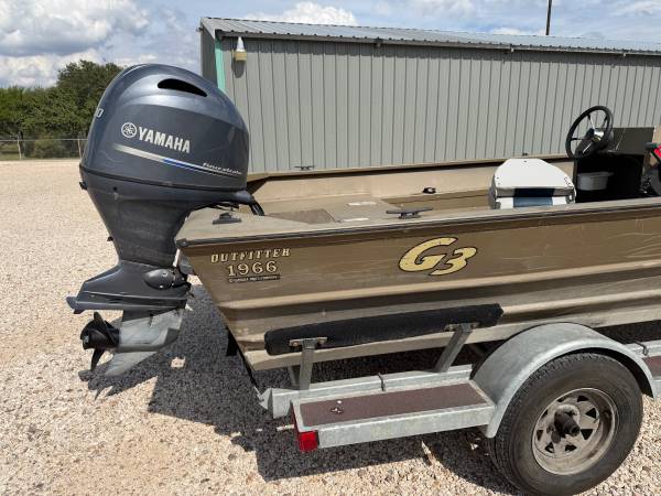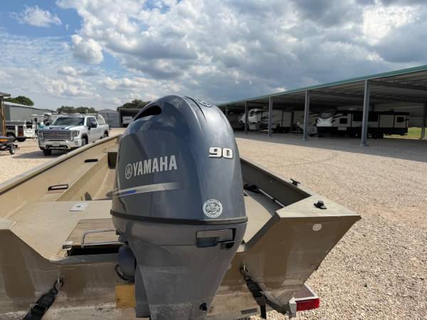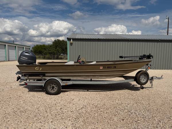 2018 G3 Model# 1966 Gator Tough Aluminum Flat bottom with High (28”) sides and 66" bottom. 2018 Yamaha 90HP 4-Stroke and a 2017galv. Trailer. Includes a Minn Kota Terrova 24v troll motor w/foot control and spot lock. (2) portable fuel tanks 12-gallon and a 6-gallon, Hydraulic steering and 3 blade SS prop. Boat is in great condition and water ready. Boat is in Victoria TX, easy to see.