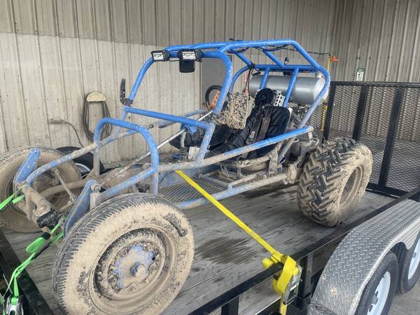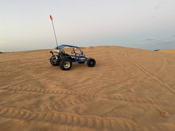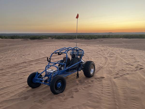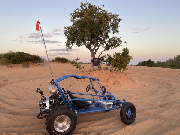 This is a vintage custom-built, 1967 Volkswagen sandrail that has been recently rebuilt for off-road use only. The vehicle features a 1967 VW Beetle-sourced chassis, engine, and other components, and comes with two sets of wheels and tires (one for all-terrain and one for mud/snow). Key updates include LED lighting, a 5150 LED programmable whip antenna, and a new rear disc brake conversion. The vehicle is sold with a Bill of Sale only, as it does not have a current title.