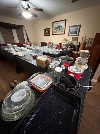 Antiques, Furniture, Glassware, Tools, Sheds, Cookware, and Quilts