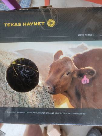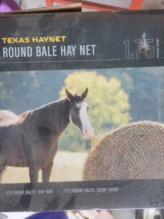 New round bale hay net . For horses or cattle. Helps cut down on wasted hay .