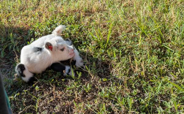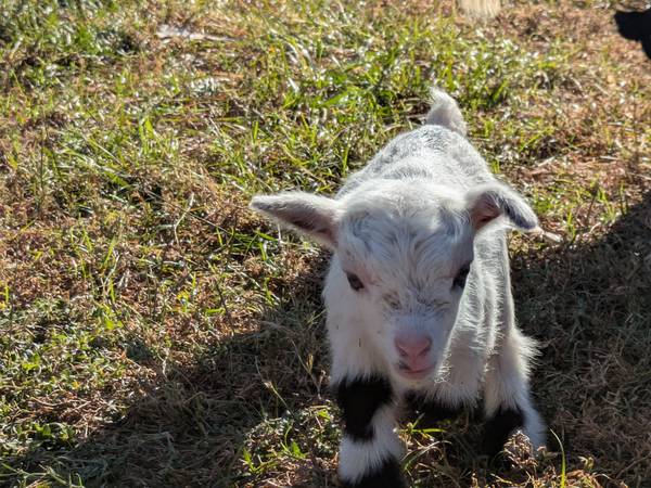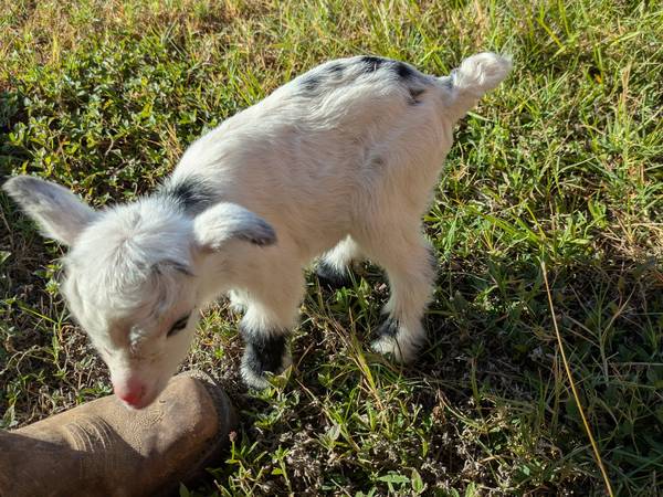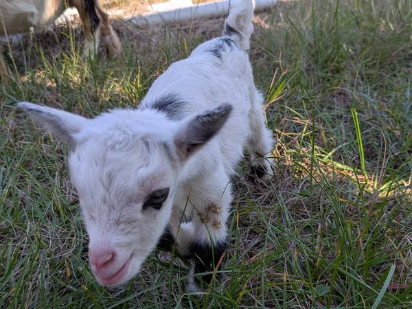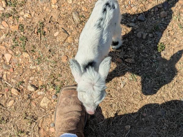 Male buckling born 11/06/25 (November 6th) and will be available for pickup around January 1st-20th, depending on when he seems able to be weaned off completely. You can give a non-refundable $75 deposit to hold him till he's ready to go home and the remaining $75 will be due at pickup. His name is boots, and his sibling is not for sale.