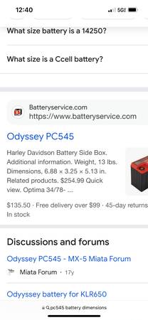 I have a odyssey battery for a softail that puts out 545 amps for 5 sec for high compressions bike sells for 147 dollars but don’t know how old it is but charges up fast so good still so asking 50 or makes a great flounder light battery last u long time! also have a new Benjamin prowler 177 new in box with scope asking 160 for it IF INTERESTED EMAIL ME THK U !