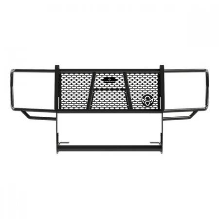 We have brand new Ranch Hand Legend grille guard. It is finished in black powder coat. It will give your truck the heavy duty protection, along with a sporty off road 4x4 look. This bumper is bolt -on, and requires no drilling to install. It is built to accommodate the factory fog lights & tow hooks. It also comes with the mounting hardware.